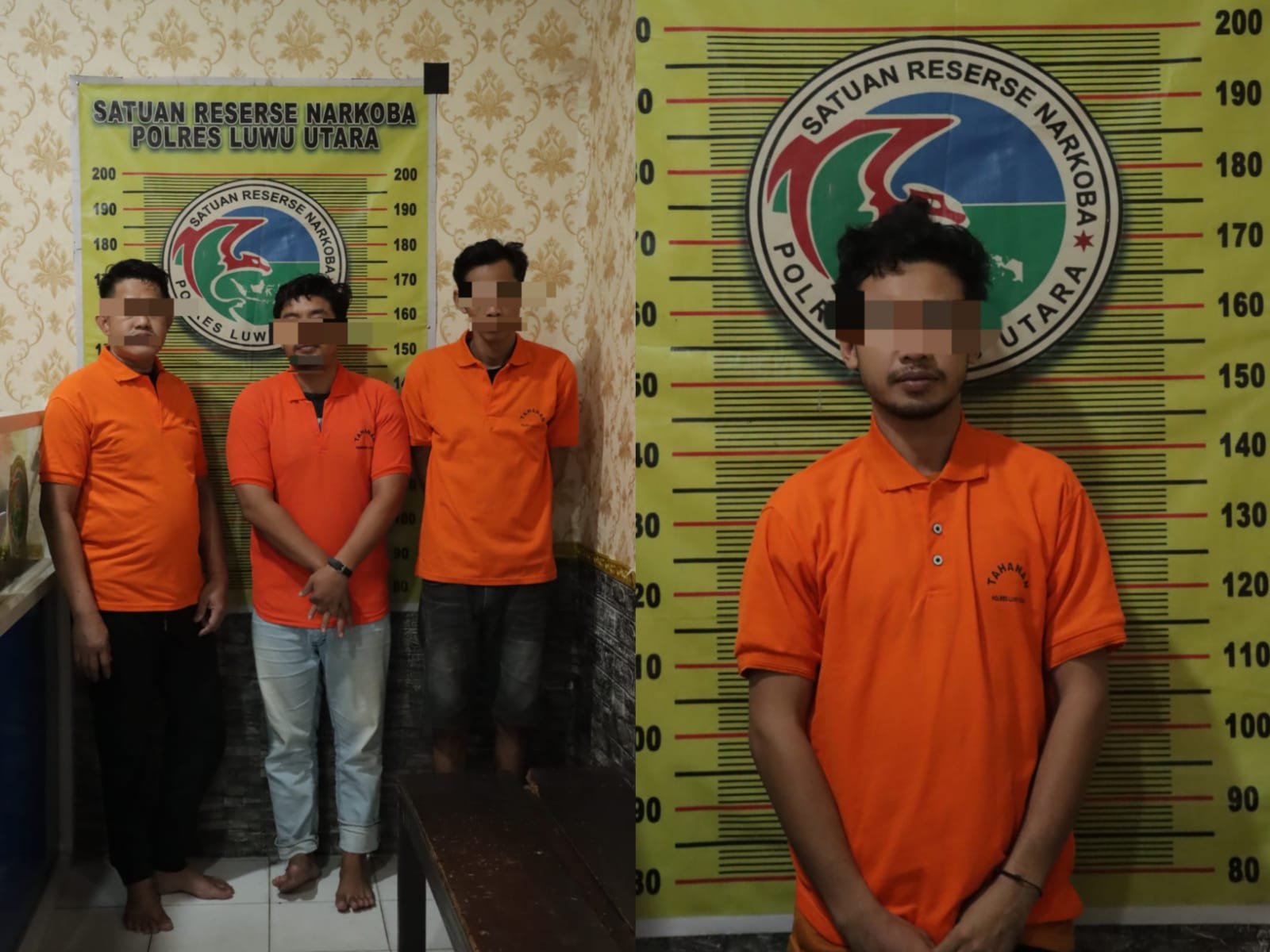 Satuan Narkoba Polres Luwu Utara menangkap empat pelaku penyalahgunaan narkoba. (ist)