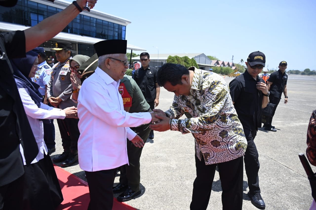 Pj Gubernur Sulsel, Bahtiar Baharuddin, menemani Wakil Presiden (Wapres) KH Ma'ruf Amin saat transit di Makassar. (ist)