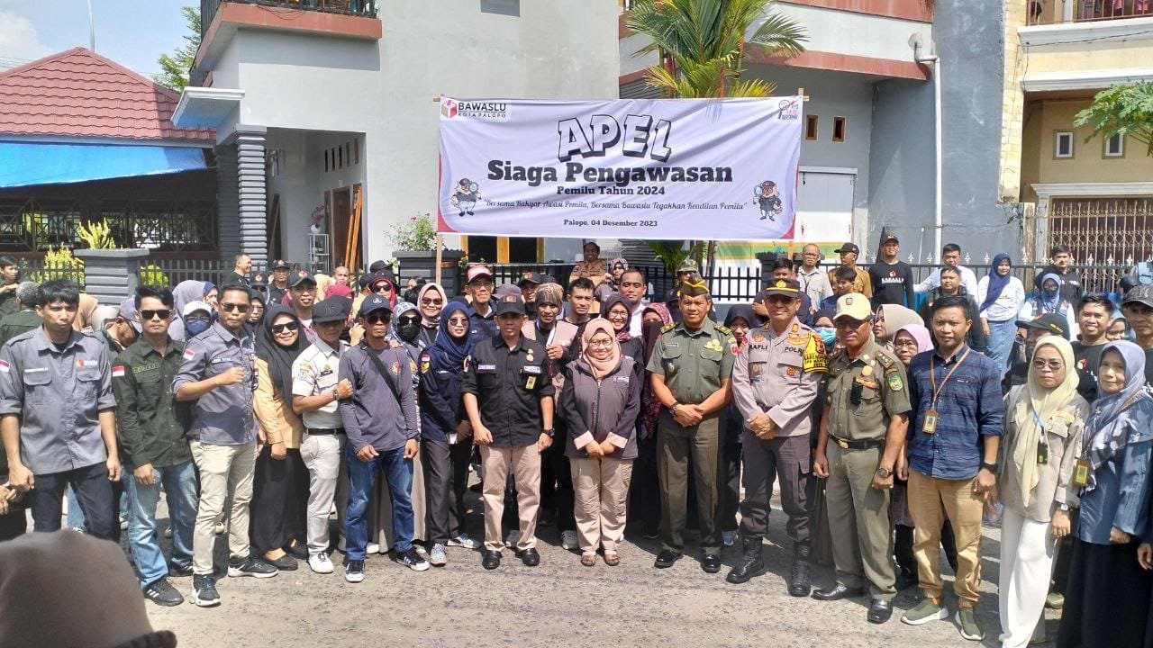 PALOPO, TEKAPE.co – Wakili Dandim 1403 Palopo, Kasdim Mayor Arm Syafaruddin ikuti Apel Siaga Pemilu 2024 yang digelar Badan Pengawas Pemilu (Bawaslu) Kota Palopo, Senin 4 Desember 2023.
