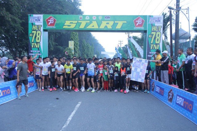 Dalam rangka memeriahkan Hari Ulang Tahun (HUT) ke-78 TNI, Kodim 0208/Asahan menggelar Fun Run di depan Markas Kodim 0208/Asahan,(alamsyah/bisnisgrosir.com)