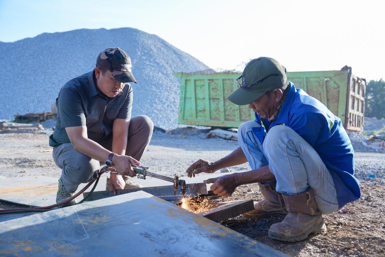 Dalam kunjungan itu, Iksan tidak hanya memantau, tetapi juga ikut terlibat dalam proses perakitan. Ia tampak memegang peralatan kerja, melakukan pengelasan, dan memotong besi untuk konstruksi mesin.
