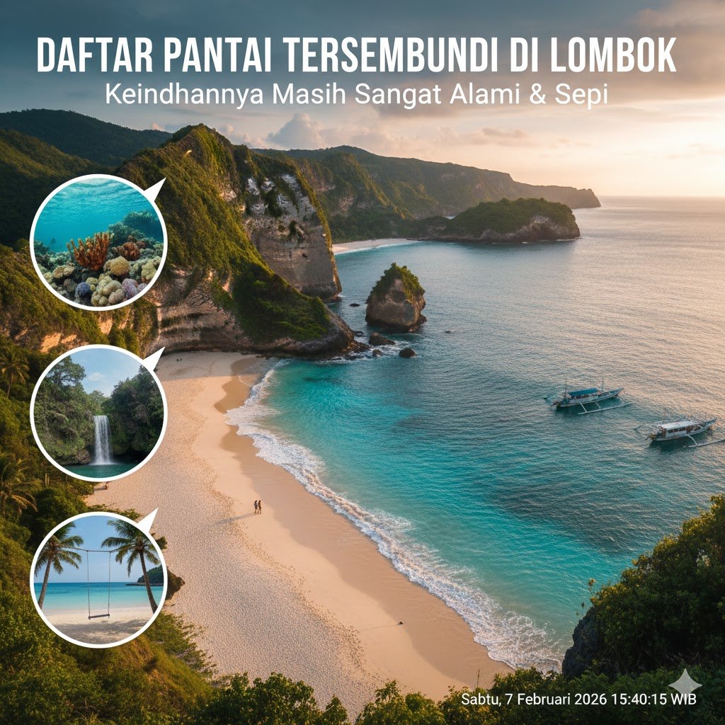Lombok selalu menjadi destinasi pelarian bagi mereka yang merasa Bali sudah terlalu padat. Pulau ini menyimpan sejuta pesona, namun bagi para petualang sejati, pantai-pantai populer seperti Senggigi atau Kuta Lombok mungkin belum cukup untuk memuaskan dahaga akan ketenangan. Jika Anda mencari tempat di mana hanya ada suara deburan ombak dan hamparan pasir putih tanpa gangguan pedagang asongan atau kerumunan wisatawan, maka menjelajahi pantai tersembunyi adalah jawabannya. Berikut adalah daftar pantai di Lombok yang keindahannya masih sangat alami, terjaga, dan menawarkan privasi maksimal bagi pengunjungnya.