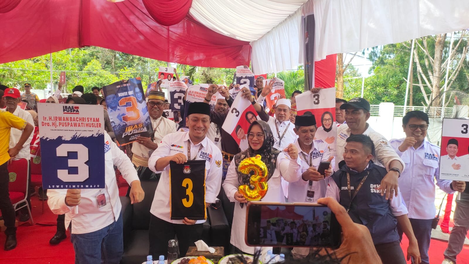 Pasangan Calon Bupati dan Wakil Bupati Luwu Timur, Irwan Bachri Syam - Puspawati Husler (Ibas-Puspa) mendapat nomor urut 3 pada pencabutan nomor urut yang digelar di KPU Kabupaten Luwu Timur, Senin pagi, 23 September 2024. (ist)