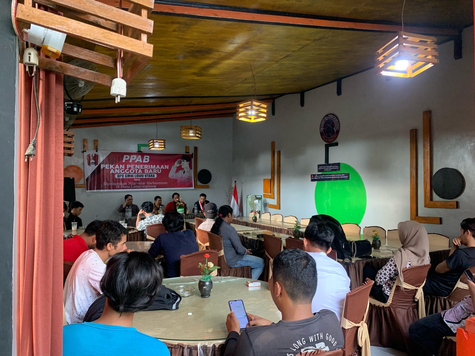 PPAB yang dirangkaikan denganpenetapan pengurus karteker DPC GMNI Lutra, dilaksanakan di warkop Dg. Asiz, Kec. Masamba, Kab. Luwu Utara. Kamis 25 April 2024.