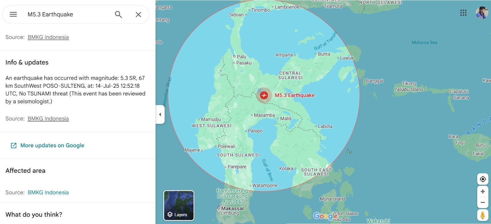 PALOPO, TEKAPE.co – Gempa dengan berkekuatan 5,3 mengguncang Poso, Sulawesi Tengah (Sulteng), hari ini, Senin (14/7/2025) sekira pukul 19.52 Wita.