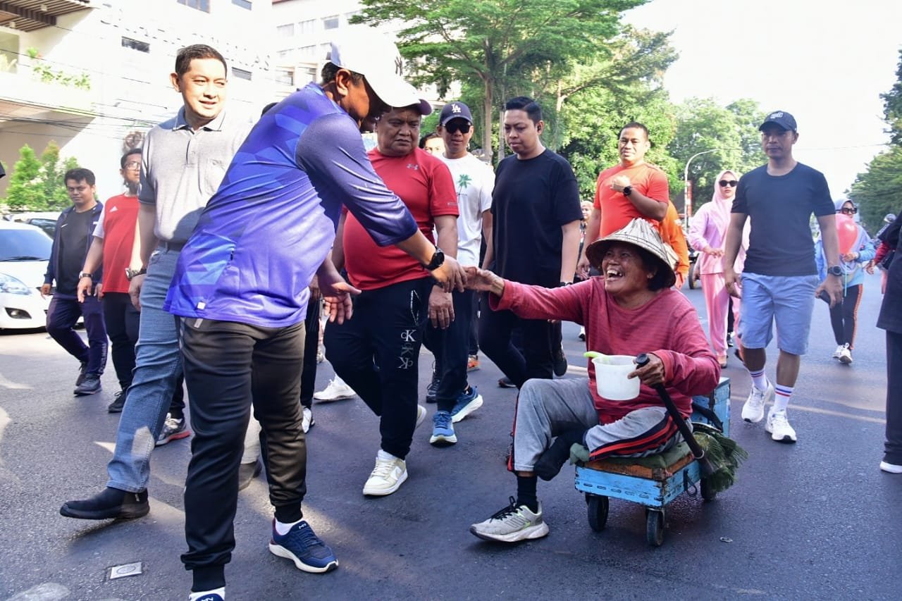 Pj Gubernur Sulsel Bahtiar bersama kepala OPD dan staf, menikmati udara pagi dengan berjalan kaki dari Center Point Of Indonesia (CPI), dan finish di Rujab Gubernur Sulsel.