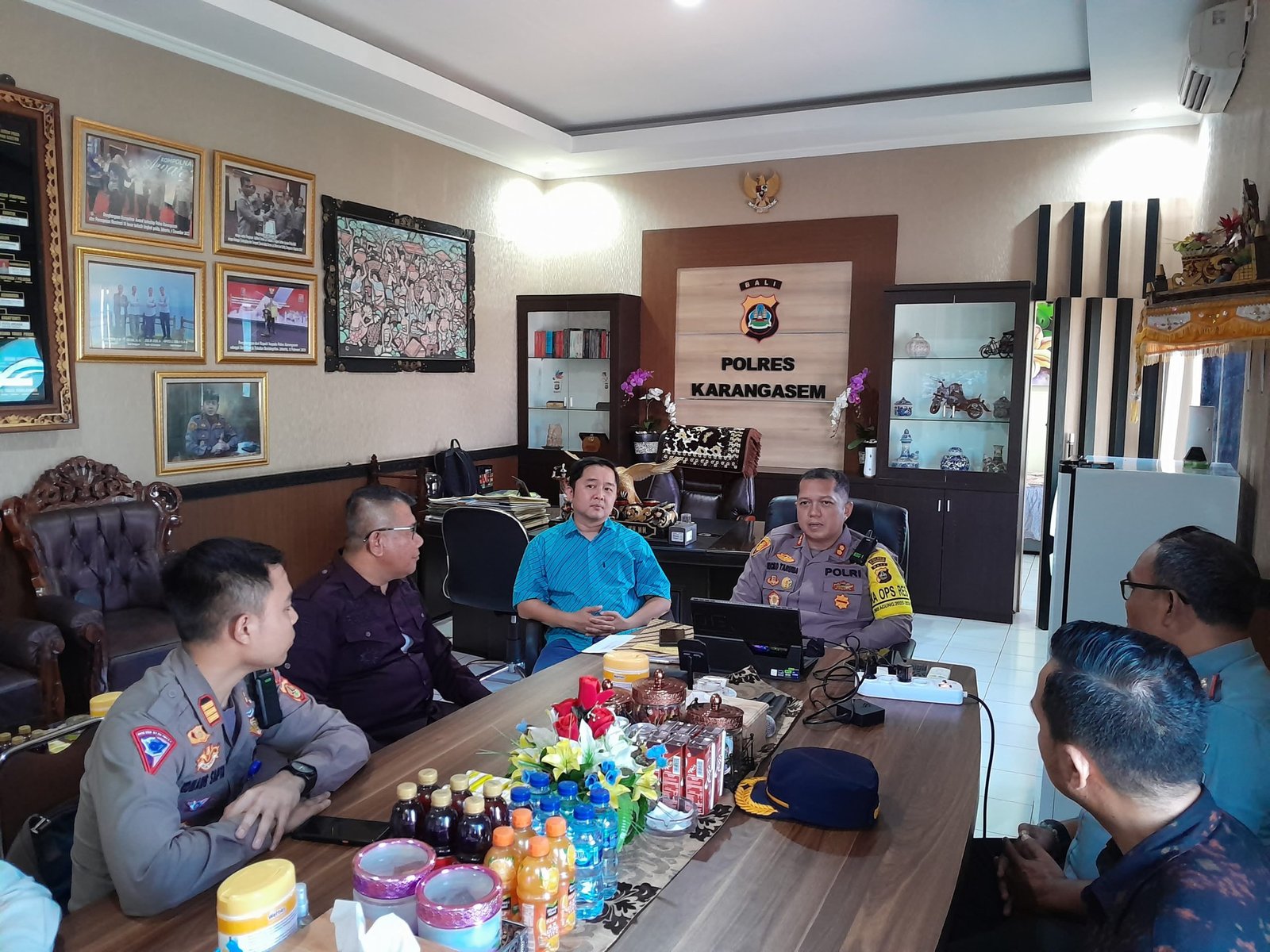 KARANGASEM, TEKAPE.co – Kepala Divisi Pemasyarakatan Kantor Wilayah Kemenkumham Bali, I Putu Murdiana didampingi oleh Kepala Lapas Kelas IIB Karangasem, Renharet Ginting dan Kepala Bapas Kelas II Karangasem, Andi Oloan Sibarani melaksanakan kegiatan audiensi dengan Polres Karangasem. Kunjungan disambut langsung oleh Kepala Polres Karangasem beserta jajaran, Selasa (21/11).