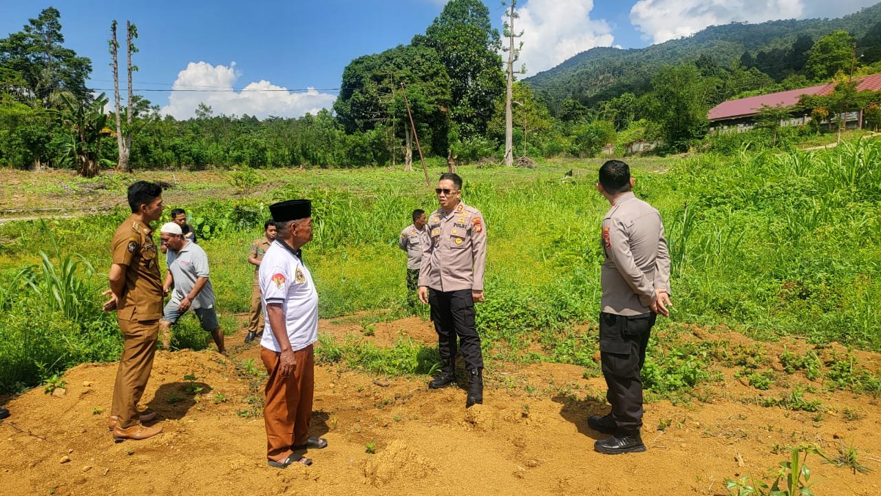 LUWU UTARA, TEKAPE.co – Kapolres Luwu Utara, AKBP Nugraha Pamungkas, meninjau langsung lokasi rencana pembangunan Dapur Sehat di Dusun Salu Karondang, Desa Dandang, Kecamatan Sabbang Selatan, Selasa (5/8/2025).
