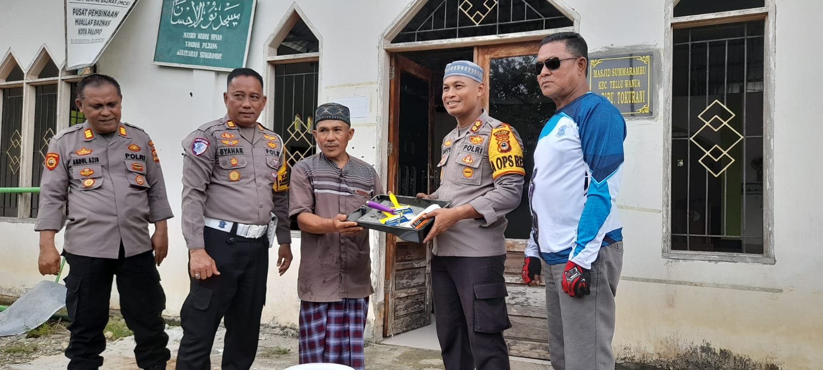 Dalam kunjungan tersebut, Kapolres Palopo menyerahkan bantuan yang diterima langsung oleh pengurus masjid, Said Saputra.