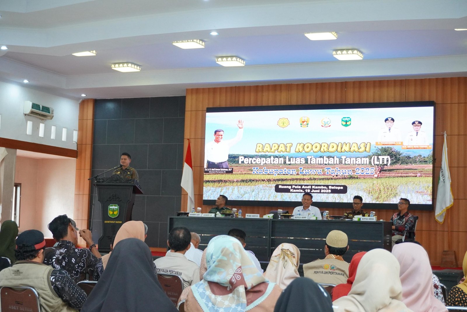 LUWU, TEKAPE.co – Pemerintah Kabupaten Luwu menggelar Rapat Koordinasi Percepatan Luas Tambah Tanam (LTT) 2025, Kamis, 19 Juni 2025. Pertemuan yang berlangsung di Ruang Pola Andi Kambo, Kantor Bupati Luwu ini menjadi momentum penting dalam upaya bersama mendukung Ketahanan dan swasembada pangan lewat peningkatan indeks pertanaman (IP) di Kabupaten Luwu.