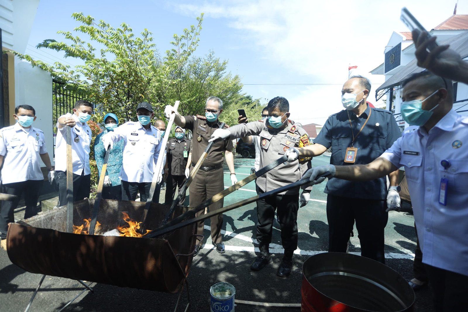 Setiap barang bukti dimusnahkan menggunakan metode yang sesuai. Sabu-sabu direbus hingga larut, timbangan digital dihancurkan dengan palu, sementara bong, plastik sabu, sendok sabu, dan potongan pipet dibakar hingga habis.