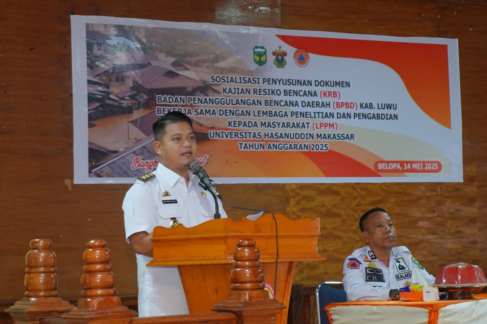 LUWU, TEKAPE.co – Wakil Bupati Luwu, Muh. Dhevy Bijak Pawindu, SH secara resmi membuka kegiatan Sosialisasi Penyusunan Kajian Risiko Bencana (KRB) yang diselenggarakan di Hotel Subur, Kecamatan Belopa Utara, Rabu, 14 Mei 2025.
