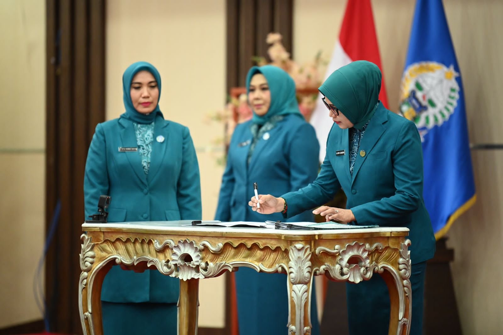MAKASSAR, TEKAPE.co – Penjabat Ketua Tim Penggerak Pemberdayaan dan Kesejahteraan Keluarga (TP PKK) Provinsi Sulawesi Selatan, Sofha Marwah Bahtiar melantik 4 Penjabat Ketua TP PKK kabupaten/kota di Ruang Pola, Kantor Gubernur Sulsel, Kota Makassar, Selasa, 26 September 2023.