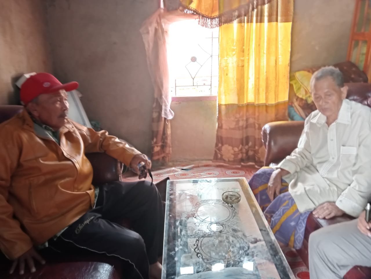 Pelapor Dahlan Tom (kiri) bersama Ketua Adat Tole, H Sahri Rego (kanan), saat di kediamannya, di Desa Tole, Towuti. (ist)