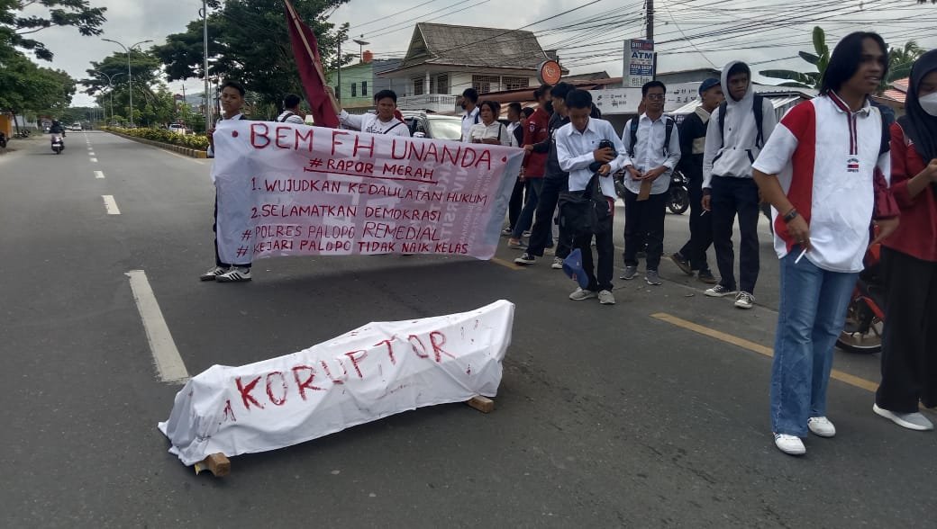 Mereka yang tergabung dalam Badan Eksekutif Mahasiswa (Bem) Fakultas Hukum, Universitas Andi Djemma (Unanda) Palopo melemparkan kritikan terkait penindakan korupsi yang dilakukan Polres dan Kejari Palopo.