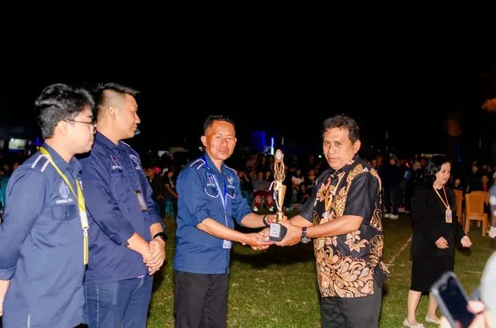 Penyerahan piala kepada pemenang diserahkan pada penutupan PRPG yang berlangsung di lapangan sepak bola Persimas Pambarea, Sabtu malam (20/7/2024).