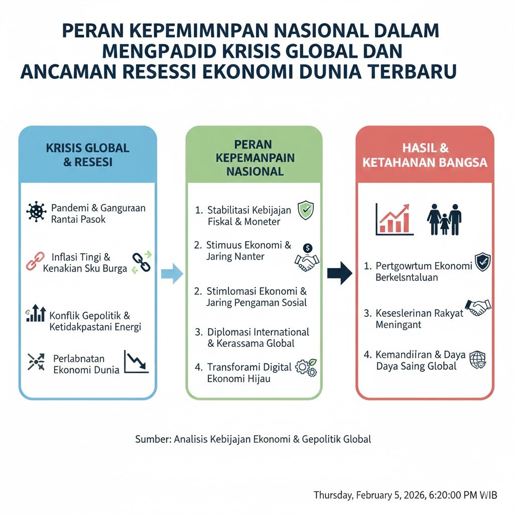 Sebagai kesimpulan, peran kepemimpinan nasional dalam menghadapi krisis global dan ancaman resesi ekonomi dunia terbaru adalah tentang menjaga keseimbangan antara stabilitas ekonomi makro dan kesejahteraan rakyat. Dengan integritas, visi yang tajam, dan koordinasi yang solid antar lembaga, tantangan global yang semula dianggap sebagai ancaman dapat diubah menjadi momentum untuk melakukan reformasi struktural yang membawa Indonesia menuju ekonomi yang lebih kuat dan mandiri.