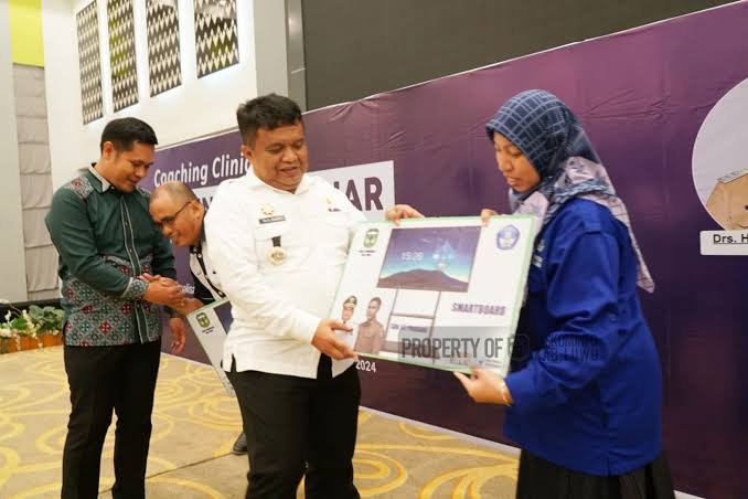 LUWU, TEKAPE.co – Penjabat (Pj) Bupati Luwu, Drs. H. Muh. Saleh, M.Si menyerahkan 18 unit smartboard untuk Sekolah Dasar (SD) dan Sekolah Menengah Pertama (SMP) di Hotel Max One Makassar, Rabu, 26 Juni 2024.