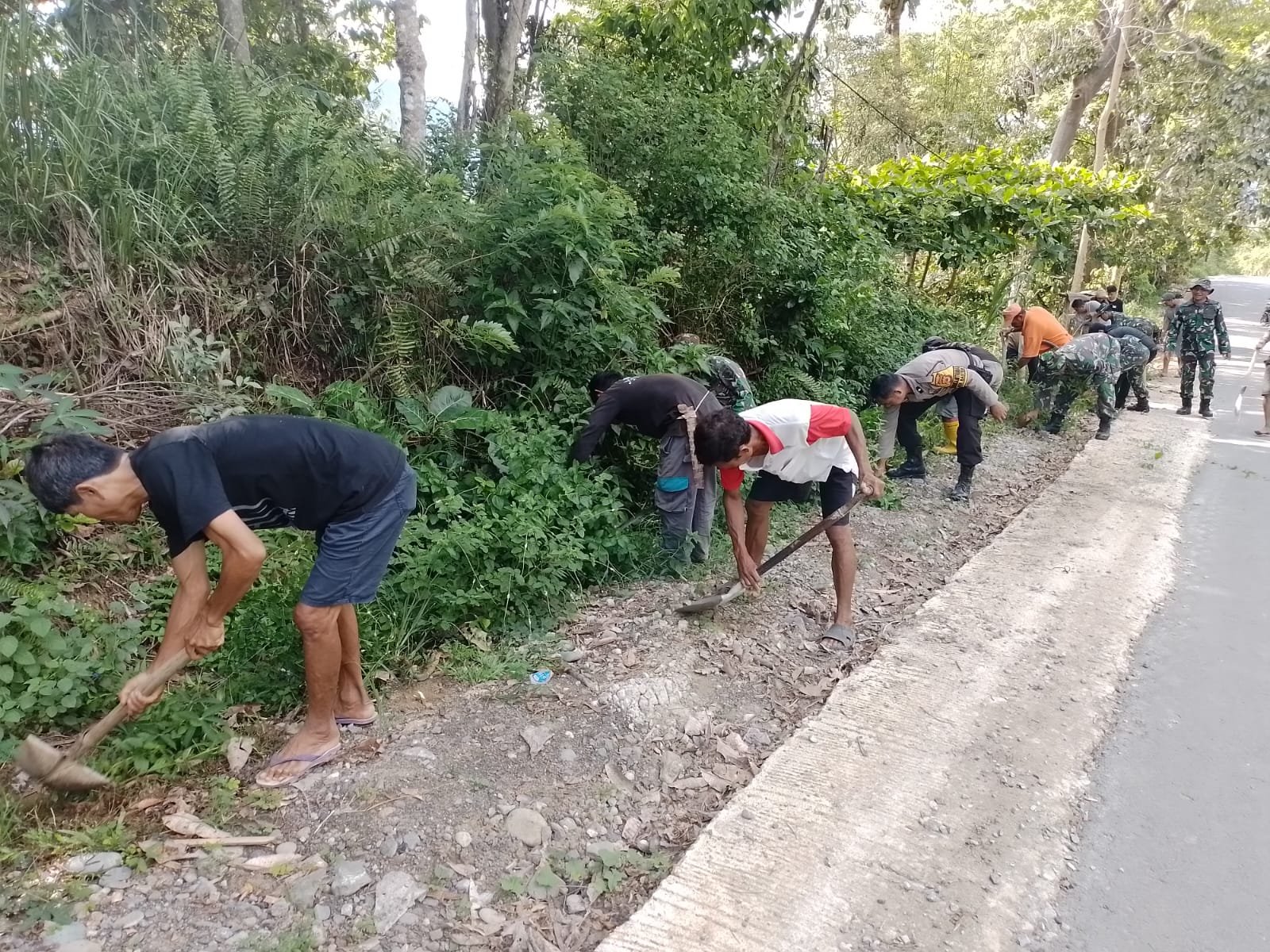 Turun langsung membersihkan Plh Danramil 1403-05 Bastem Peltu Amaluddin, anggota Polsek, Aipda Andri, Kepala Desa Pantilang Musa Pabuang dan warga.
