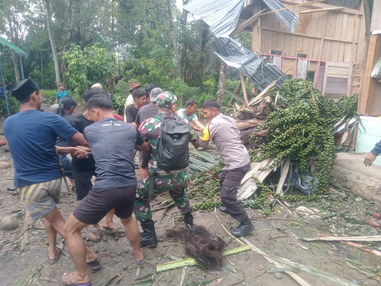Akibat hantaman pohon dan material rumah, korban mengalami luka berat di bagian wajah.