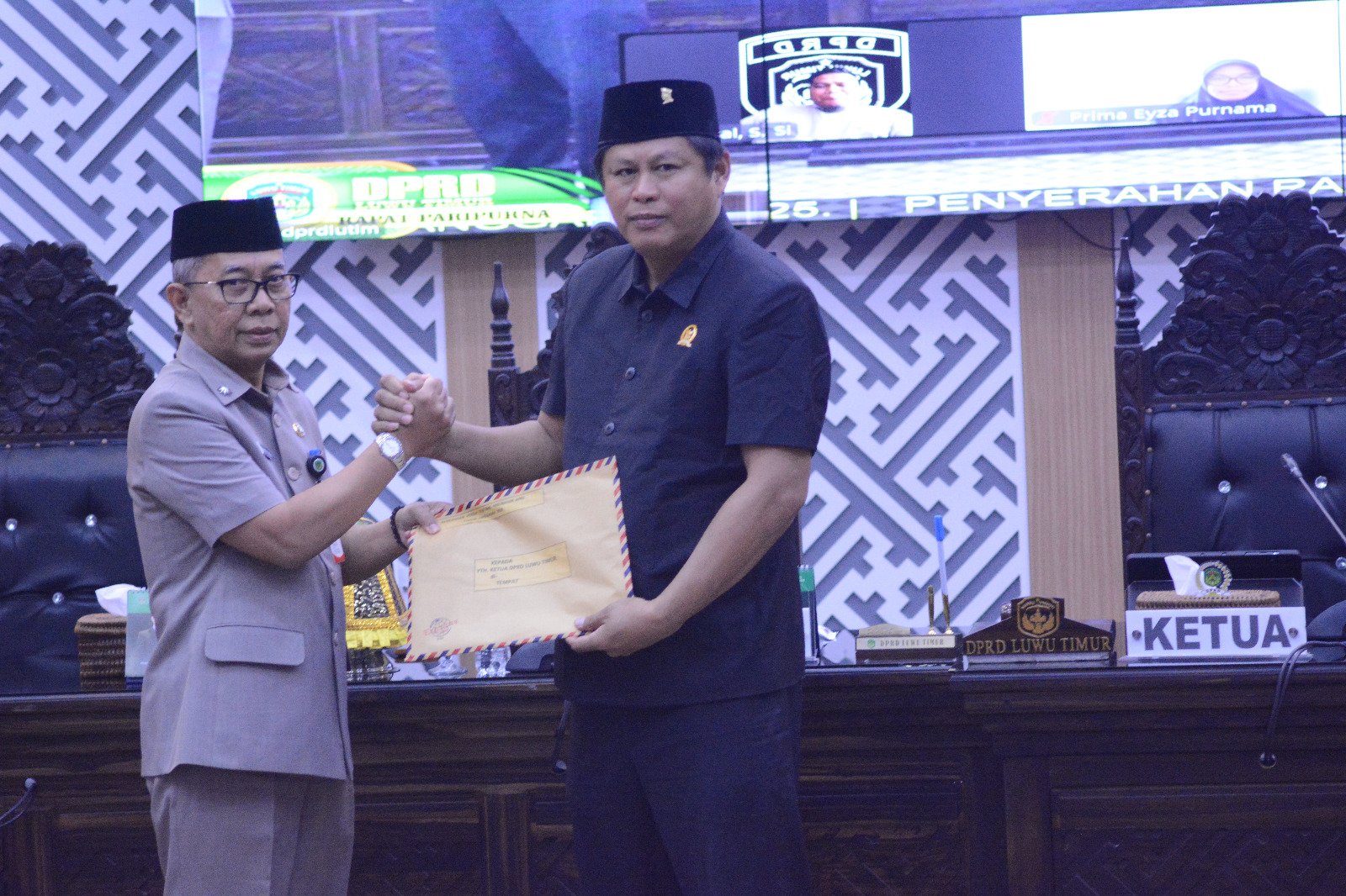 Penyerahan Ranperda tentang Perubahan Anggaran Pendapatan dan Belanja Daerah (APBD) Tahun Anggaran 2025 kepada DPRD Luwu Timur, Senin (28/7/2025), dalam Rapat Paripurna. (hms)