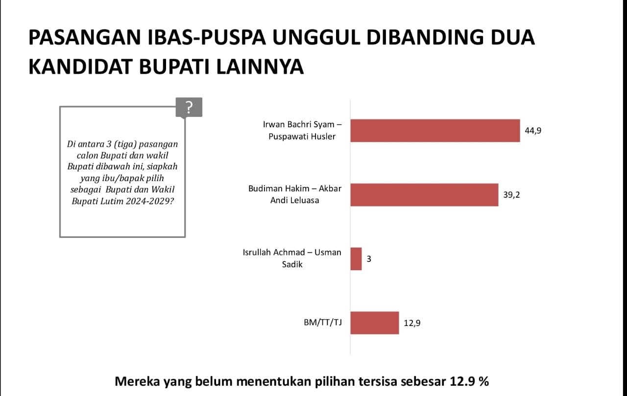 MAKASSAR, TEKAPE.co – Lembaga Survei LSI Denny JA merilis hasil survei di Pemilihan Kepala Daerah (Pilkada) Luwu Timur (Lutim).
