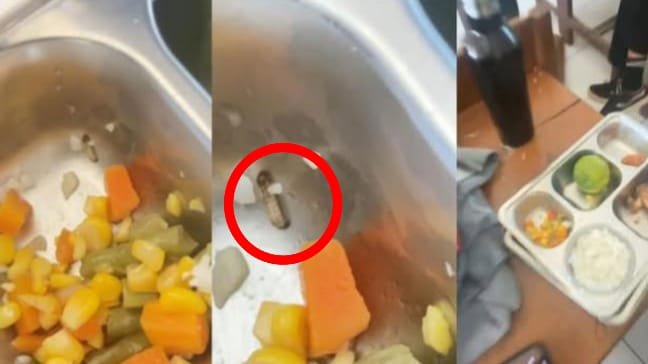 Seorang siswa menemukan ulat dalam hidangan sayur yang disajikan pada jam makan siang, Rabu (1/10/2025).