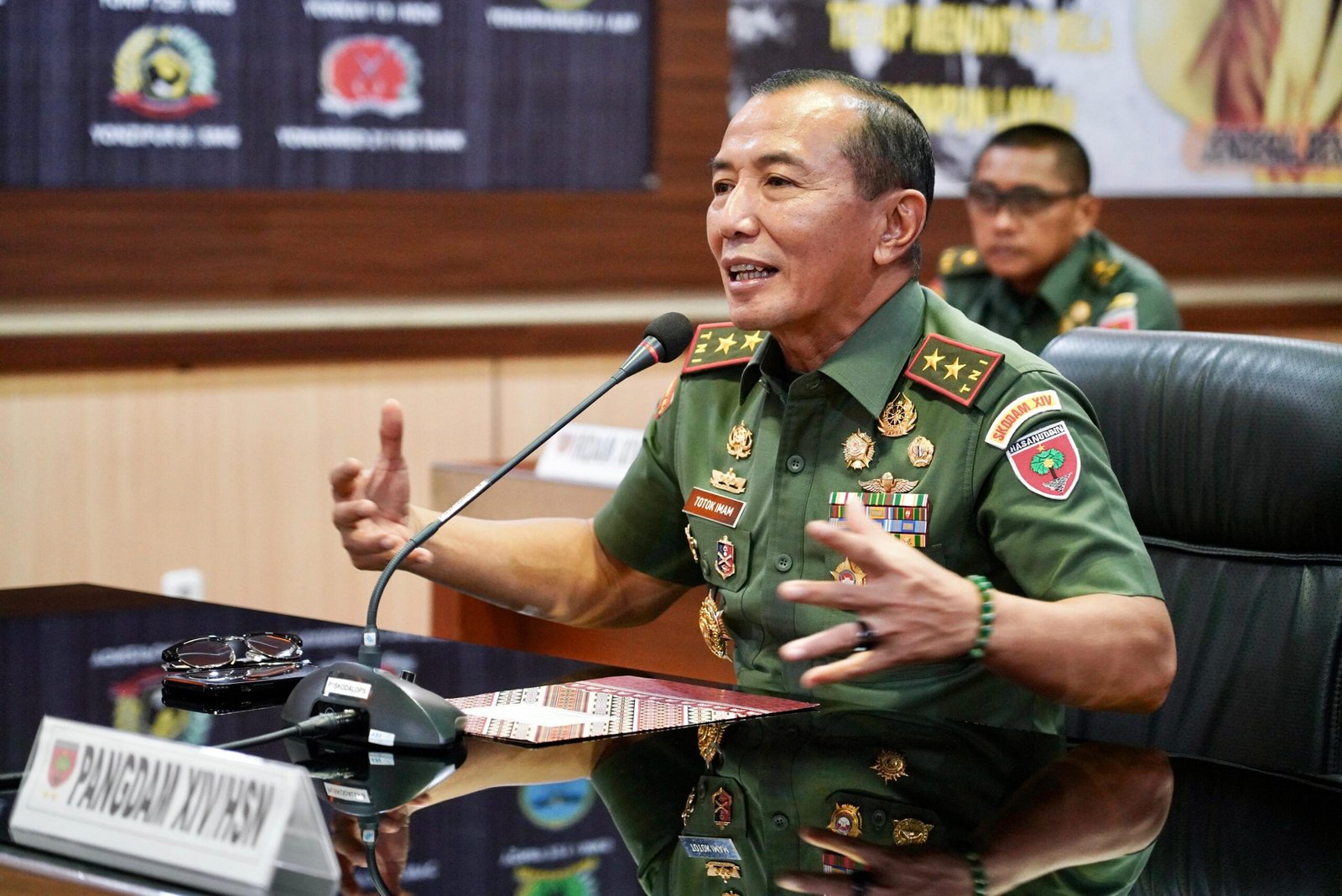 MAKASSAR, TEKAPE.co – Panglima Kodam atau Pangdam XIV Hasanuddin Mayjen TNI Totok Imam Santoso berikan pengarahan kepada seluruh Komandan Satuan (Dansat) jajaran Kodam.