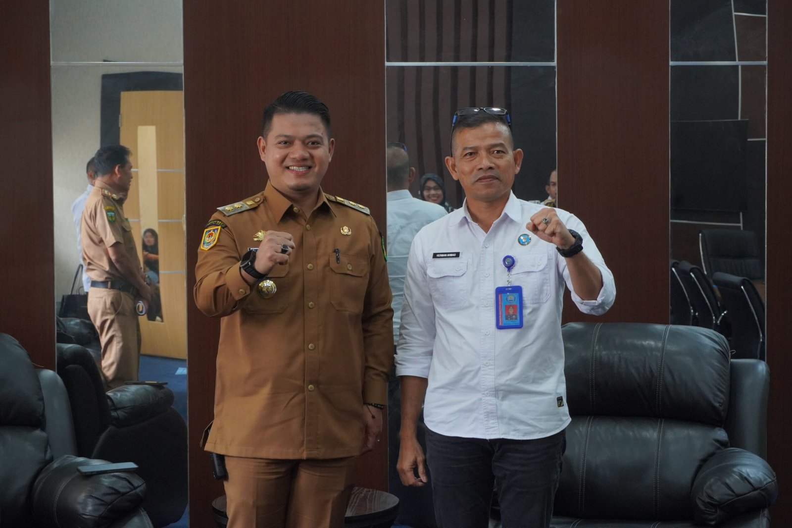 Wakil Bupati Luwu, Muh. Dhevy Bijak Pawindu, berfoto bersama Kepala BNN Kota Palopo, AKBP Herman, usai audiensi membahas sinergi program Pencegahan dan Pemberantasan Penyalahgunaan serta Peredaran Gelap Narkotika (P4GN) di Kabupaten Luwu, Senin (25/8/2025). (ist)