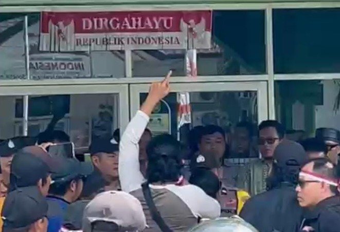 Aksi yang dikawal ketat aparat Polres Asahan itu berlangsung tegang. Massa membawa spanduk, poster, hingga pengeras suara. Tanpa komando, orasi-orasi keras langsung menggema di depan pintu masuk kantor.
