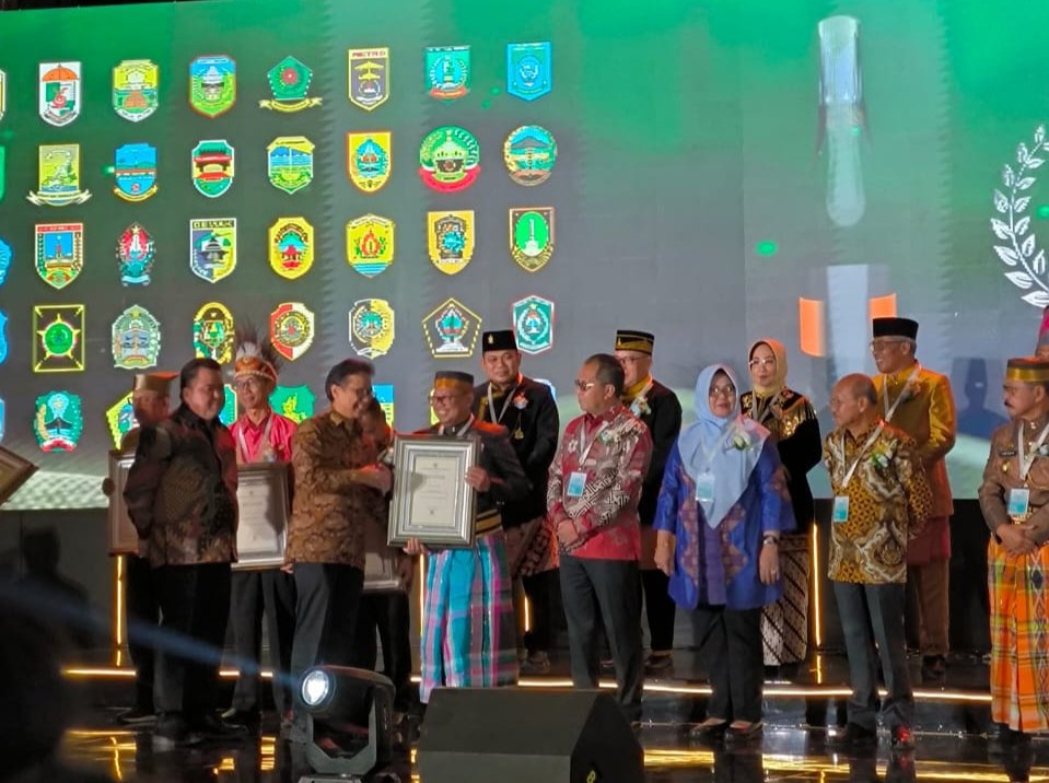 Penyerahan penghargaan ini pada malam anugerah, penghargaan Kabupaten/Kota Sehat (KKS) dan Sanitasi Total Berbasis Masyarakat (STBM) STBM seluruh Indonesia di Grand Ballrooom Kempinski Hotel Jakarta, Selasa 28 November 2023.